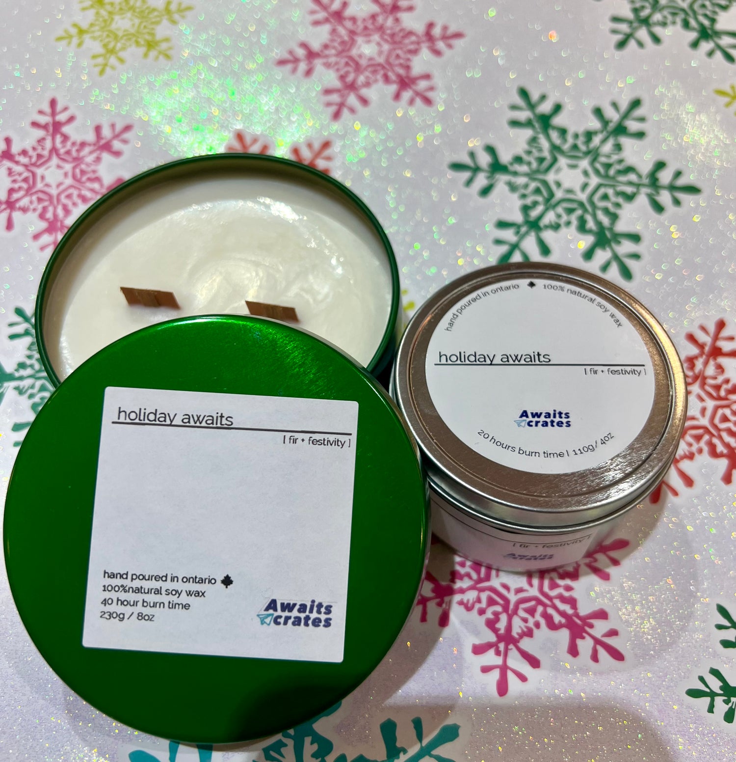 Holiday Awaits Luxury Soy Wood Wick Candle: fir + festivity