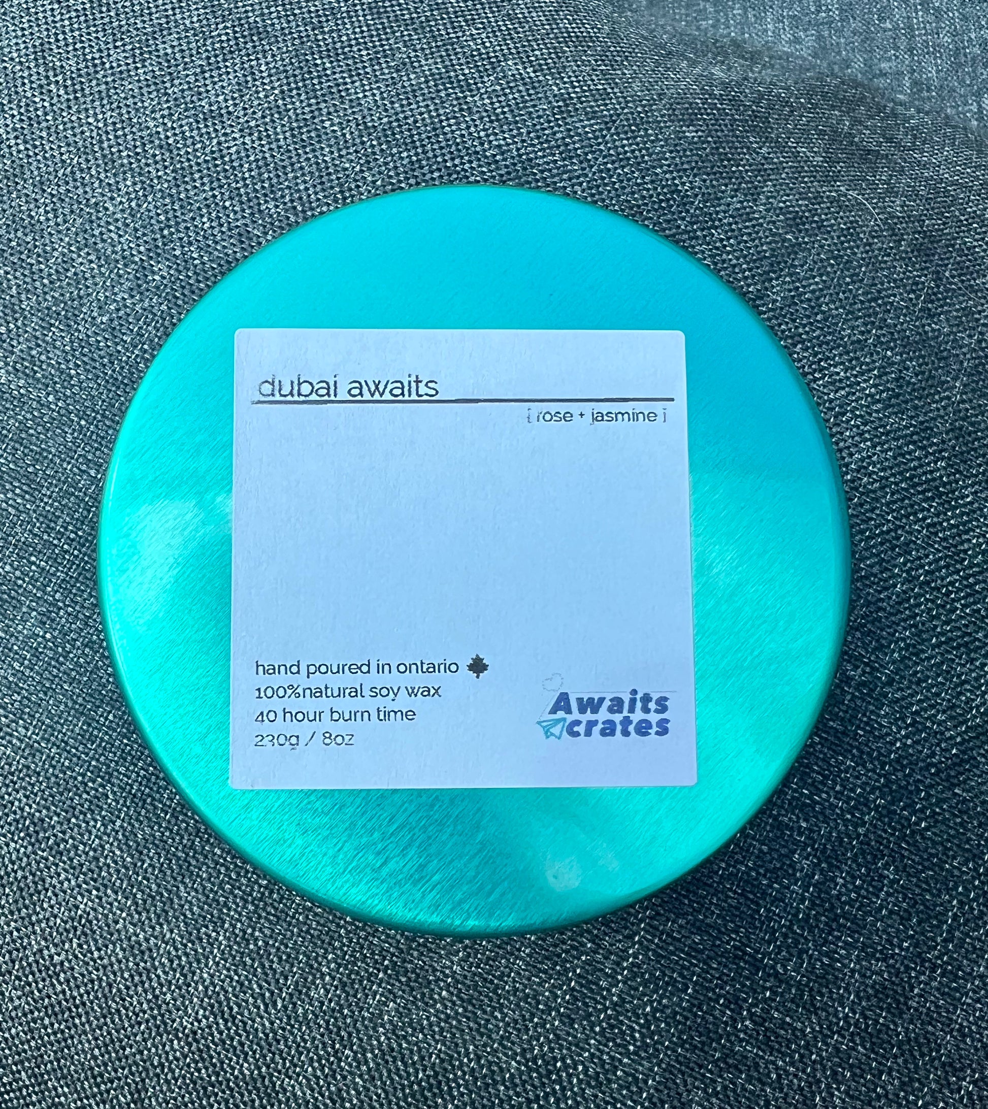 Dubai Awaits Luxury Soy Wood Wick Candle: rose + jasmine