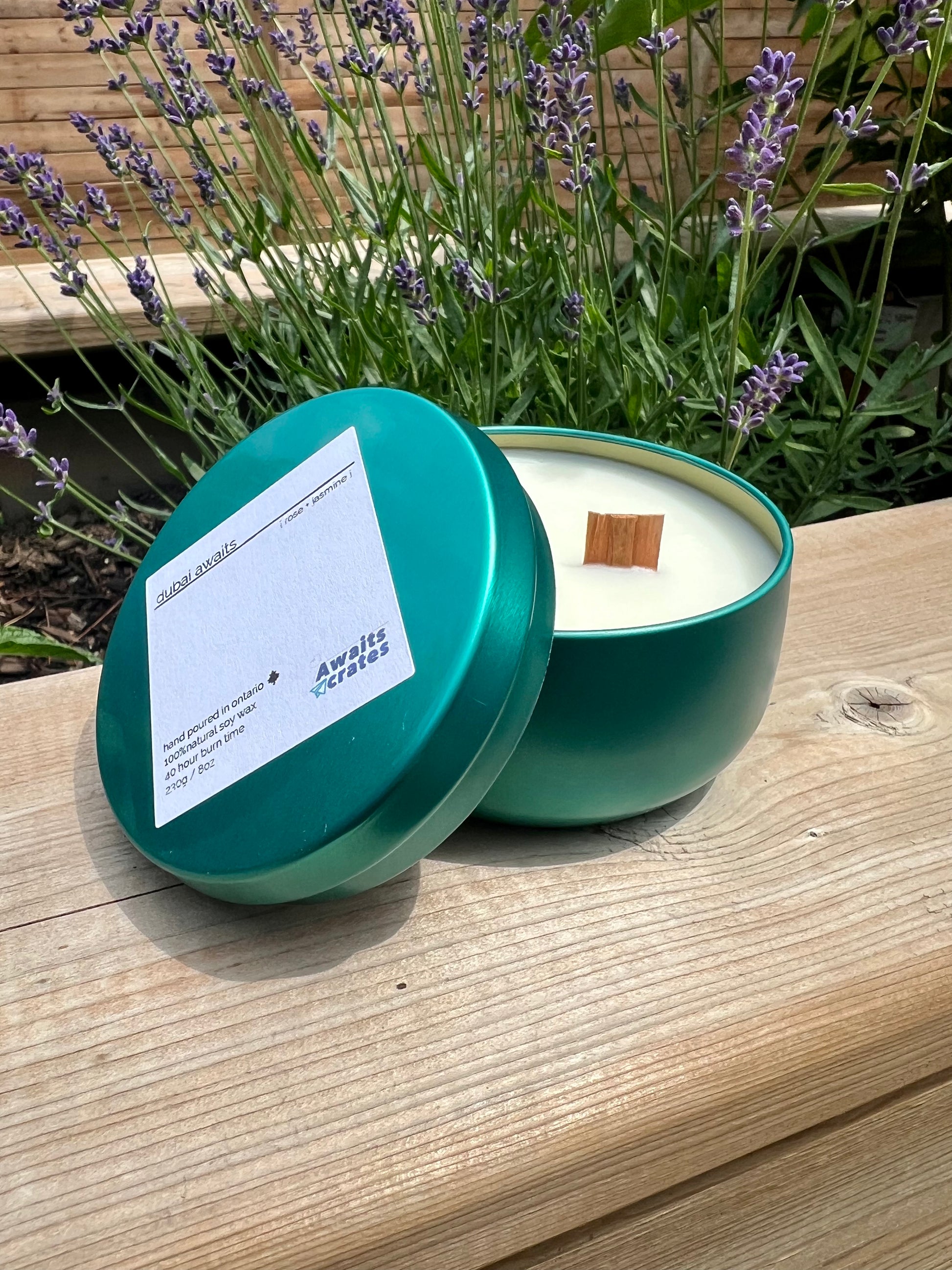 *Our candles will burn for roughly 40 hours for our popular 230g/8oz size, and about 20 hours for our smaller 110g/4oz tins.