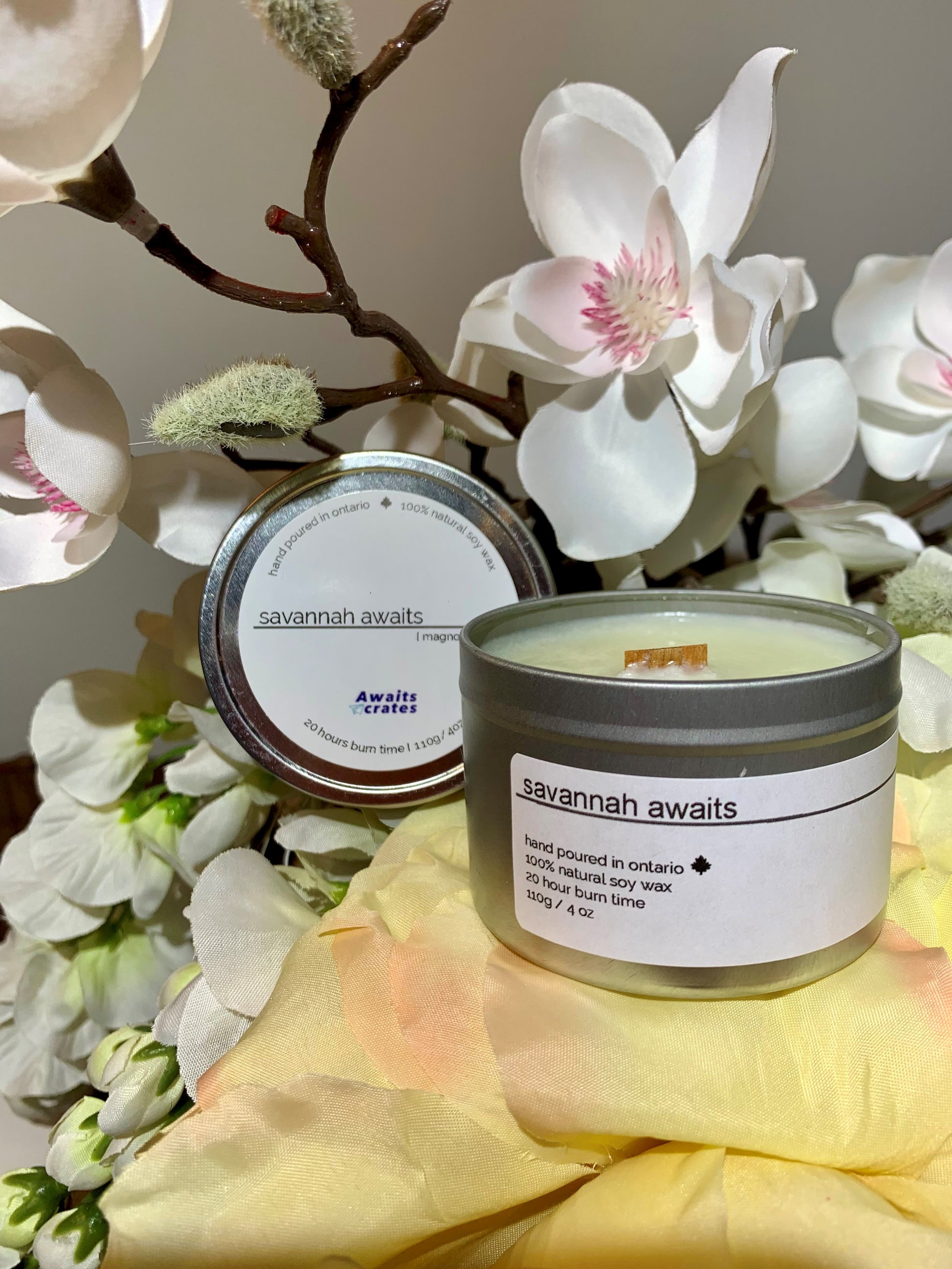 <transcy>Savannah Awaits Bougie à mèche en bois de soja de luxe</transcy>