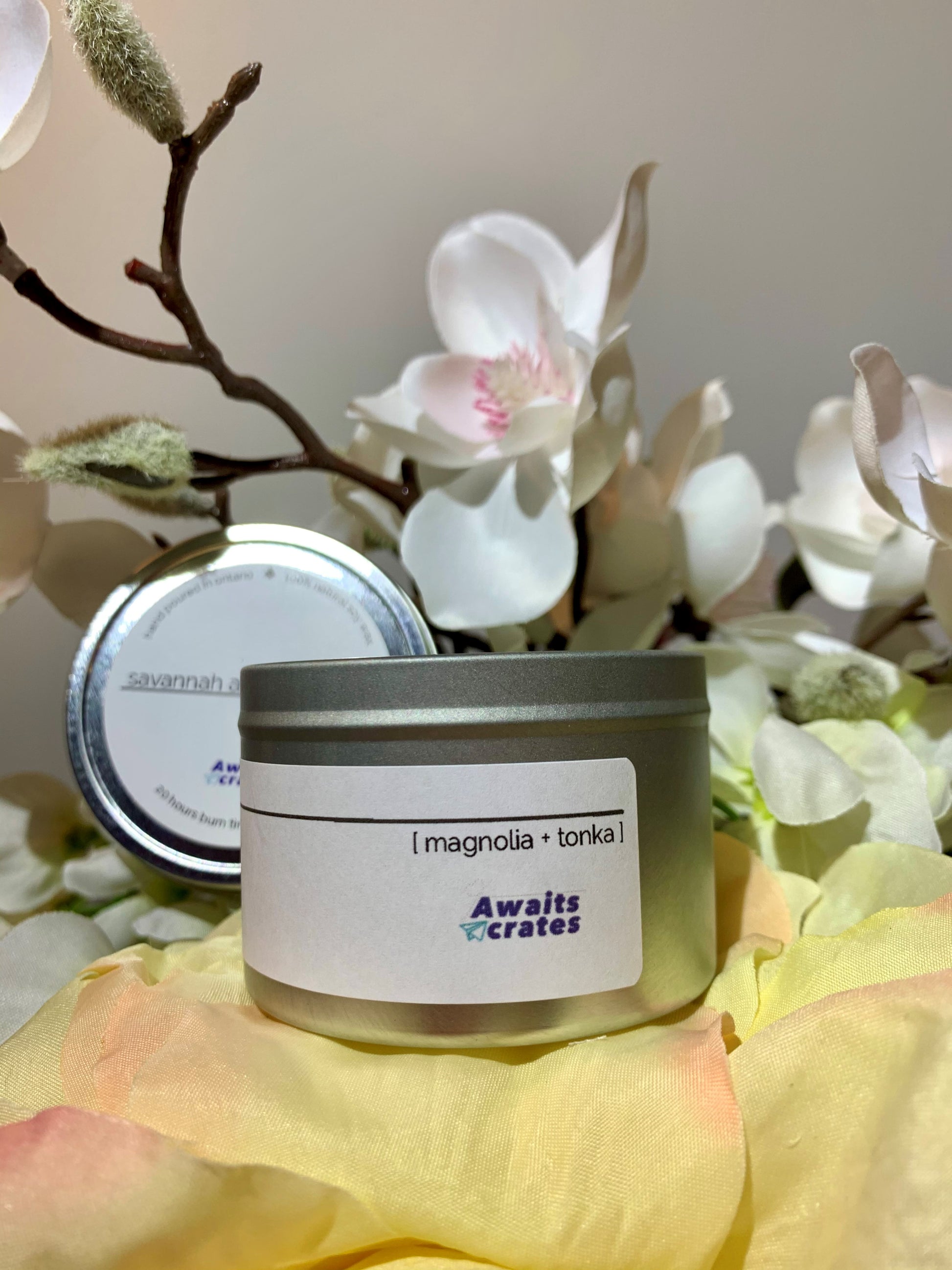 Il y a peu de parfums qui peuvent remplir une pièce comme la fleur de magnolia crémeuse. Associé à une fève tonka fumée, notre parfum succulent vous transportera dans les jardins élégants et gracieux du sud de la vieille savane, avec leurs chênes moussus et leurs abondantes fleurs de magnolia. L'un de nos 6 parfums originaux Destination Awaits, c'est vraiment l'un de nos préférés. Vous voudrez peut-être allumer cette beauté et vous verser une limonade, fermer les yeux et vous imaginer transporté dans les brises côtières luxuriantes et chaudes de Savannah.
