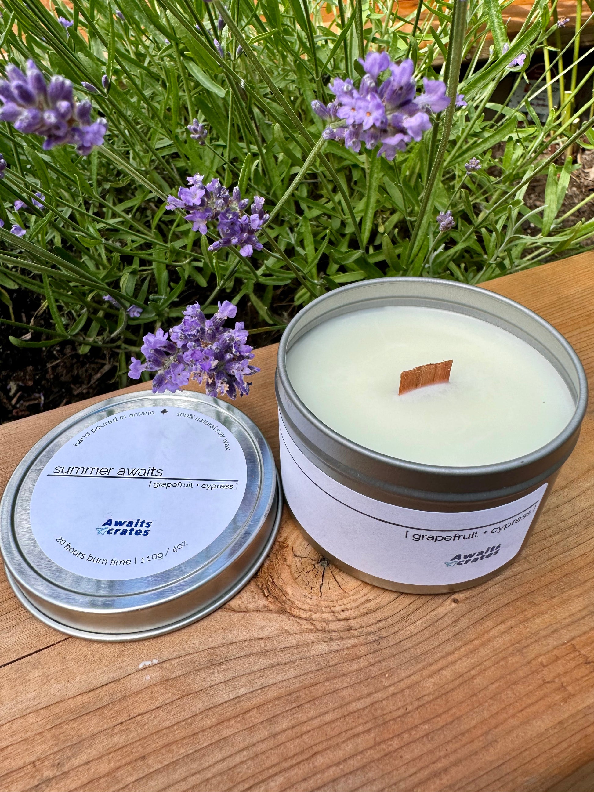 Summer Awaits Luxury Soy Wood Wick Candle: grapefruit + cypress