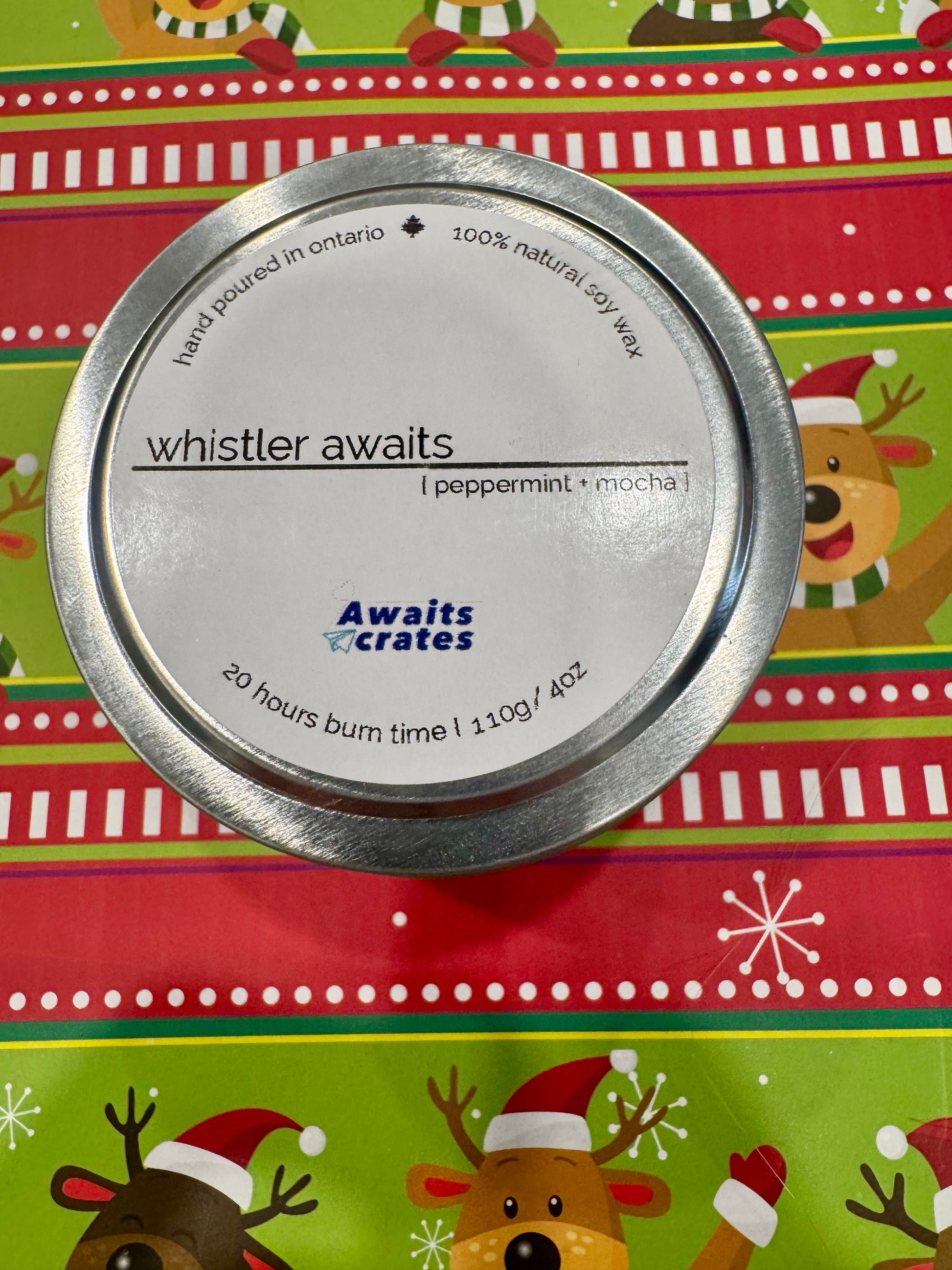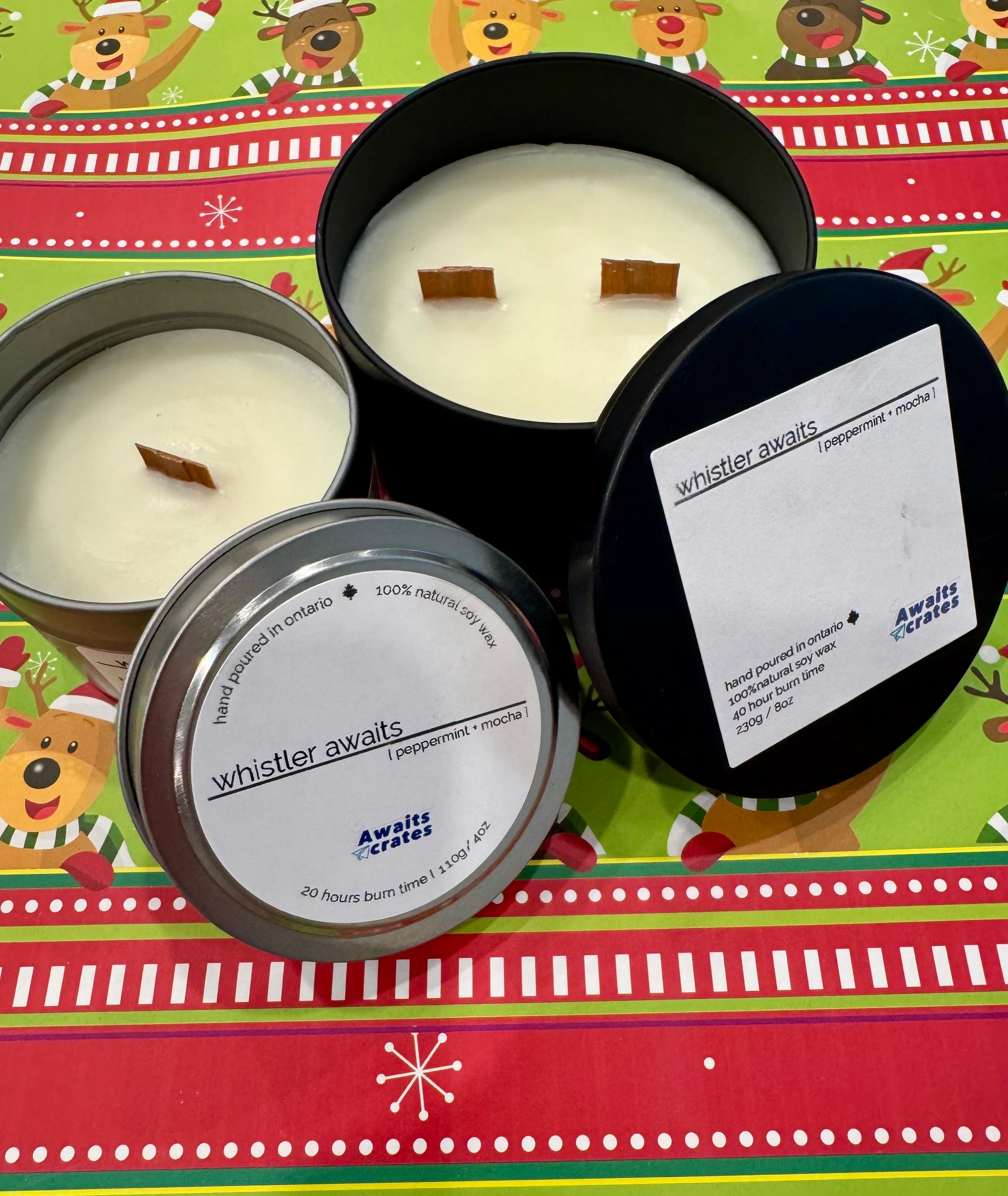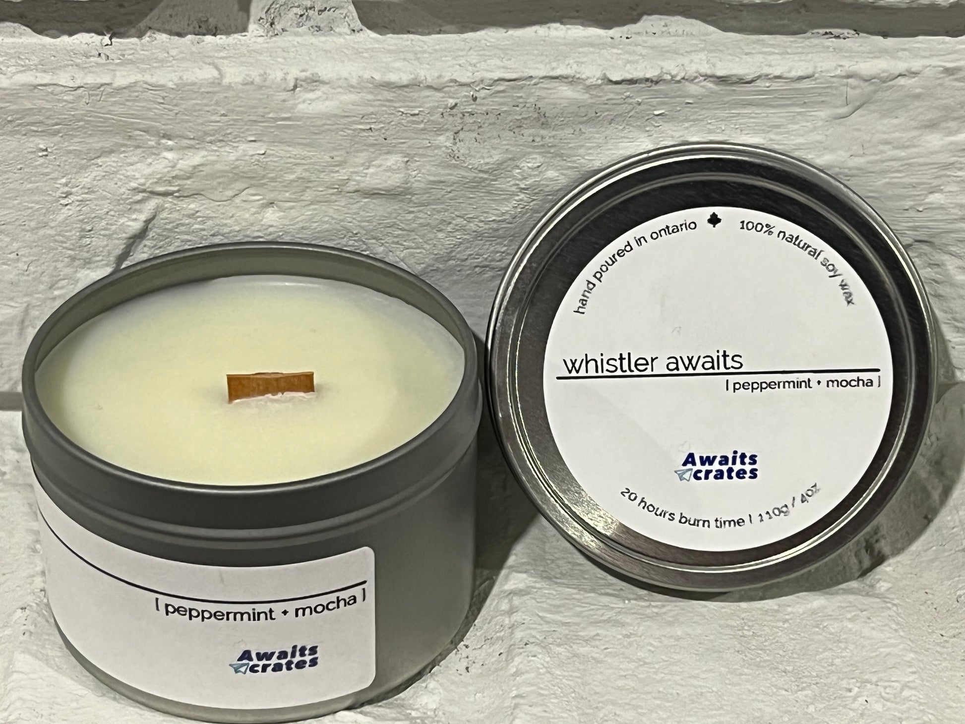 Whistler Awaits Luxury Soy Wood Wick Candle: peppermint + mocha