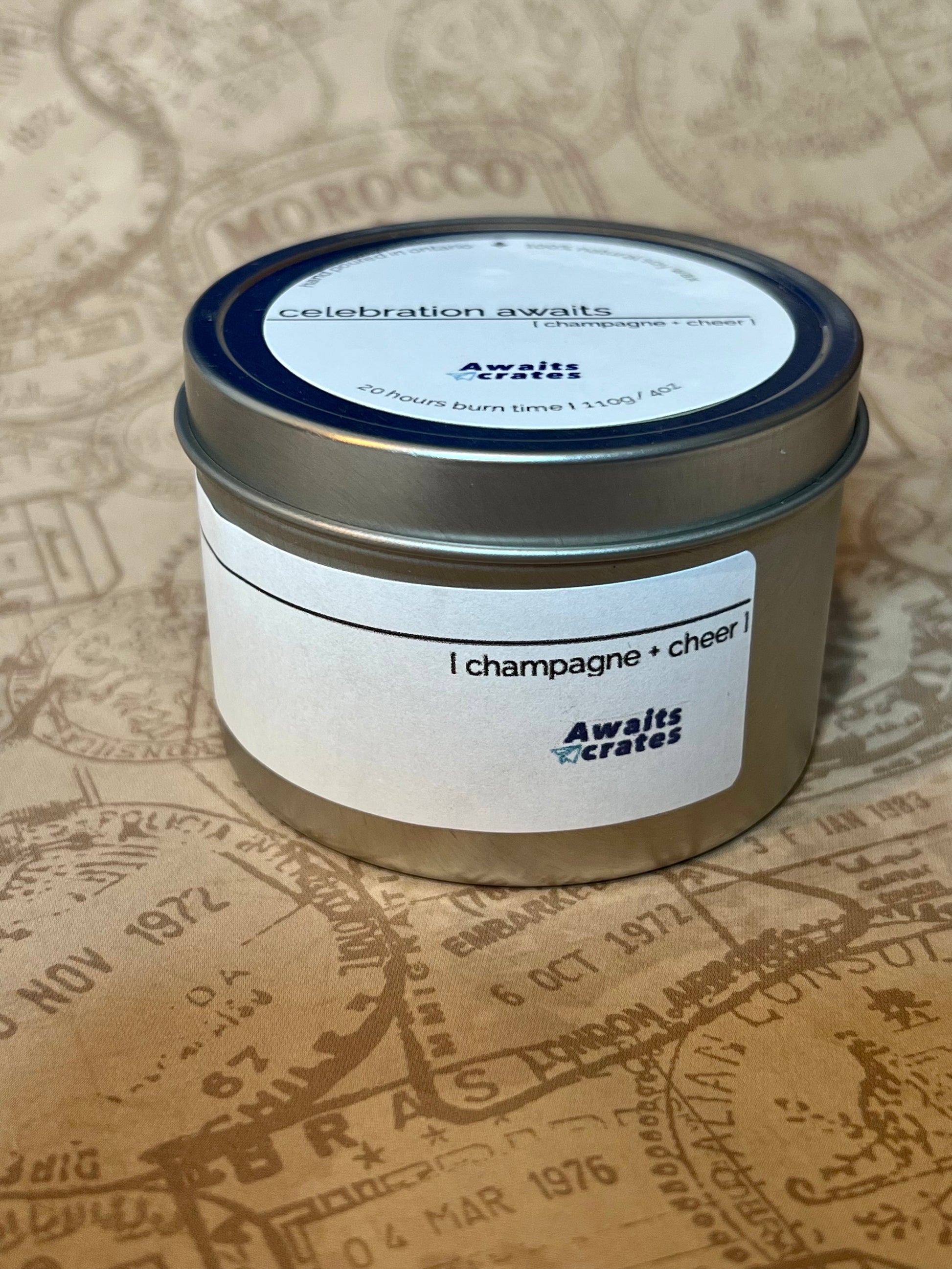 *Our candles will burn for roughly 40 hours for our seasonal red 230g/8oz size, and about 20 hours for our smaller silver 110g/4oz tins.