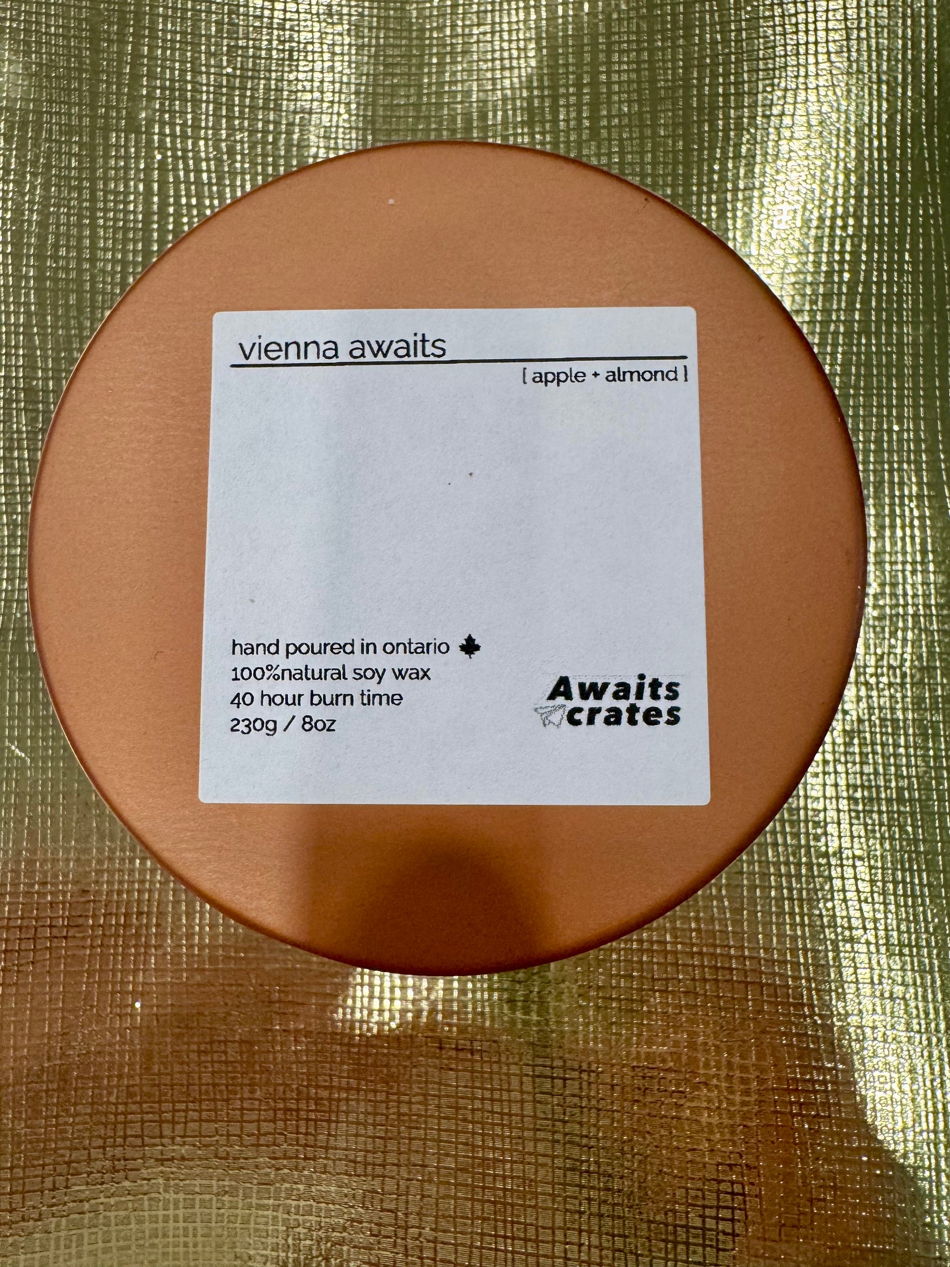 Vienna Awaits Luxury Soy Wood Wick Candle: apple + almond
