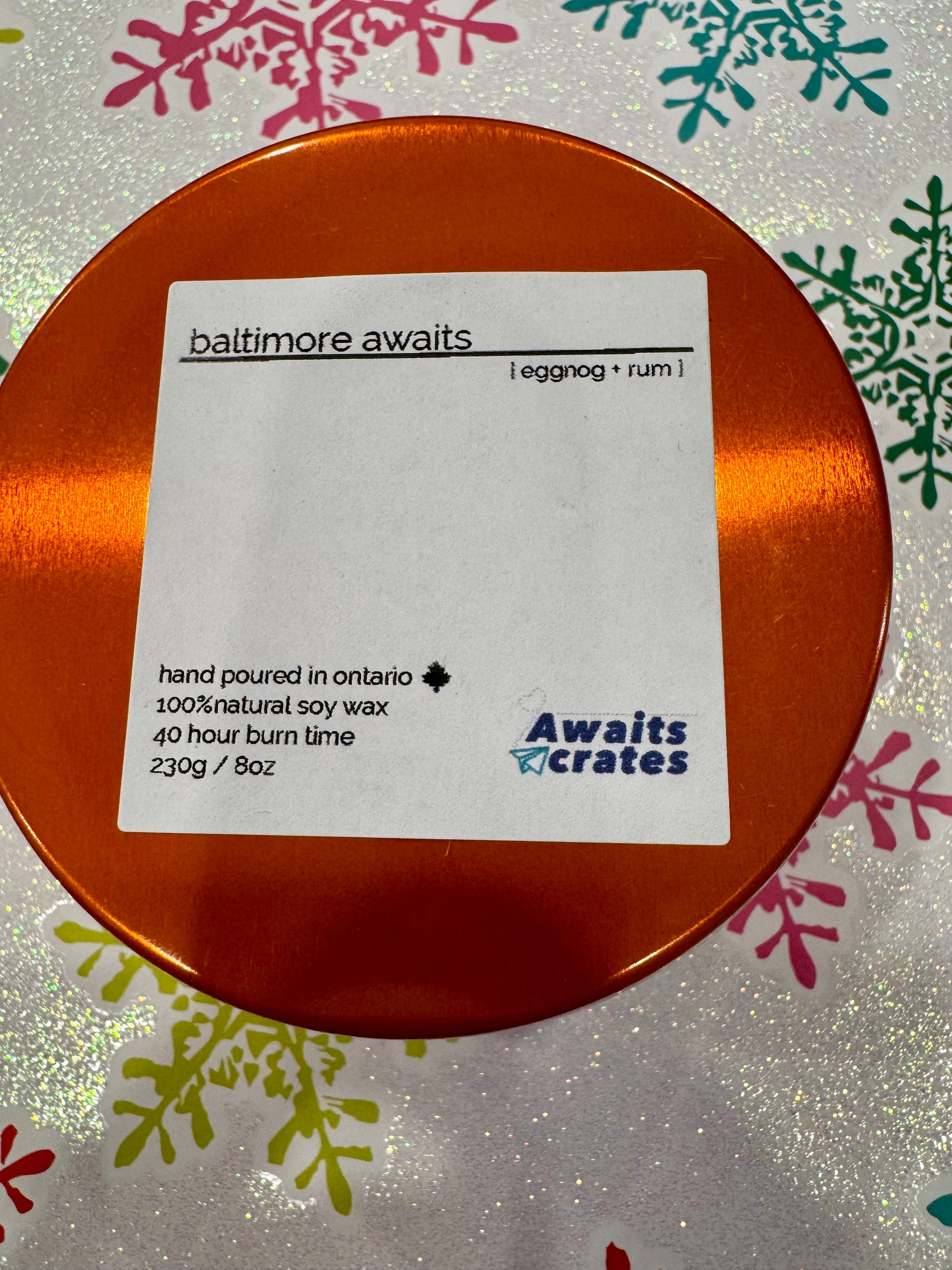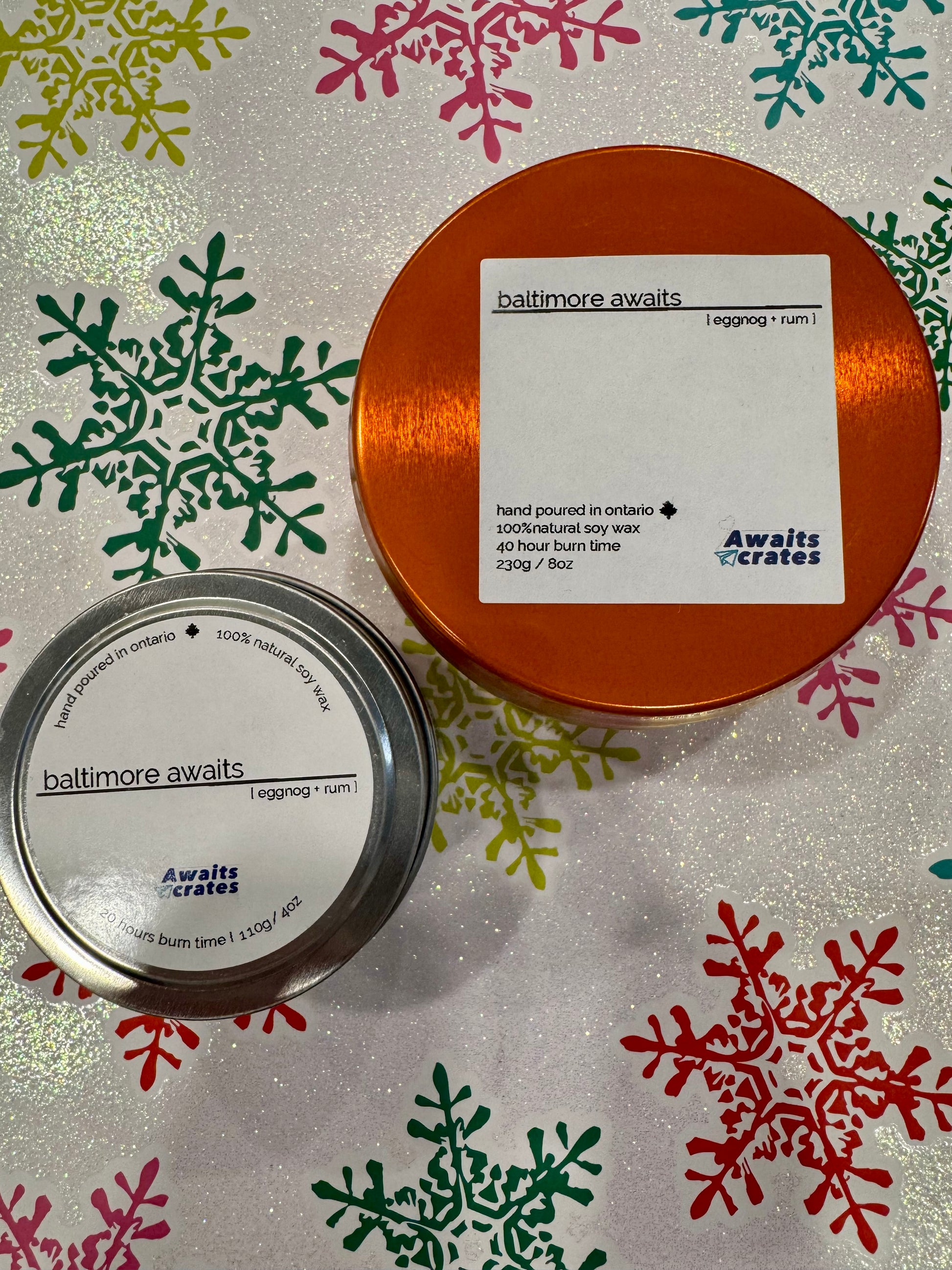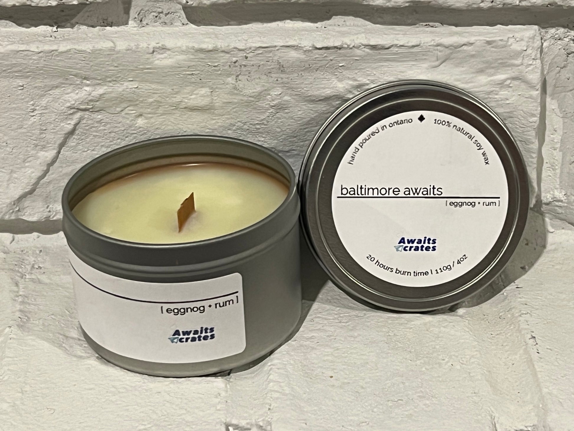 Baltimore Awaits Luxury Soy Wood Wick Candle: eggnog + rum