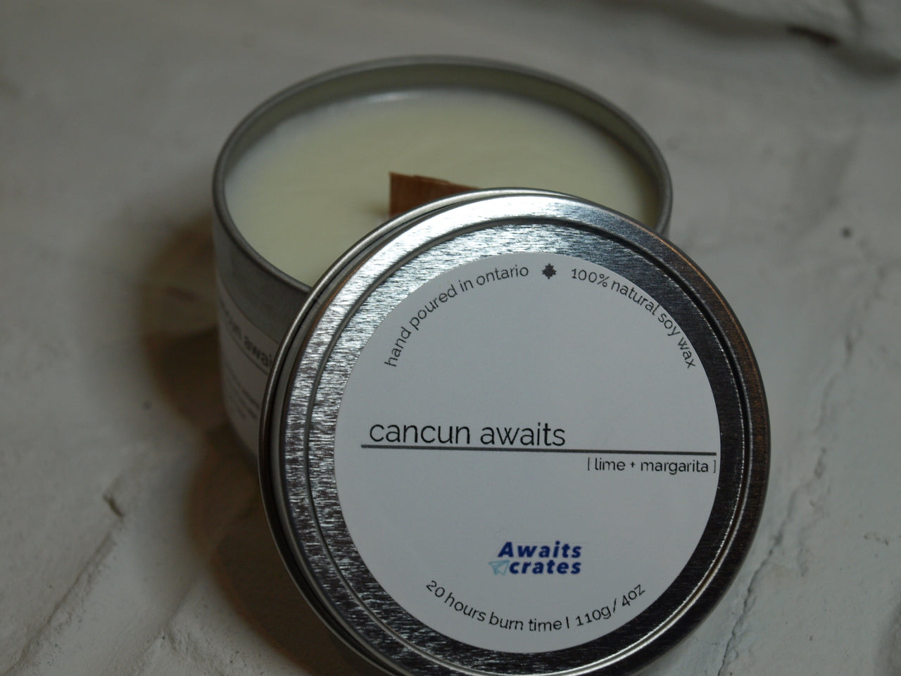 Cancun Awaits Luxury Soy Wood Wick Candle: lime + margarita