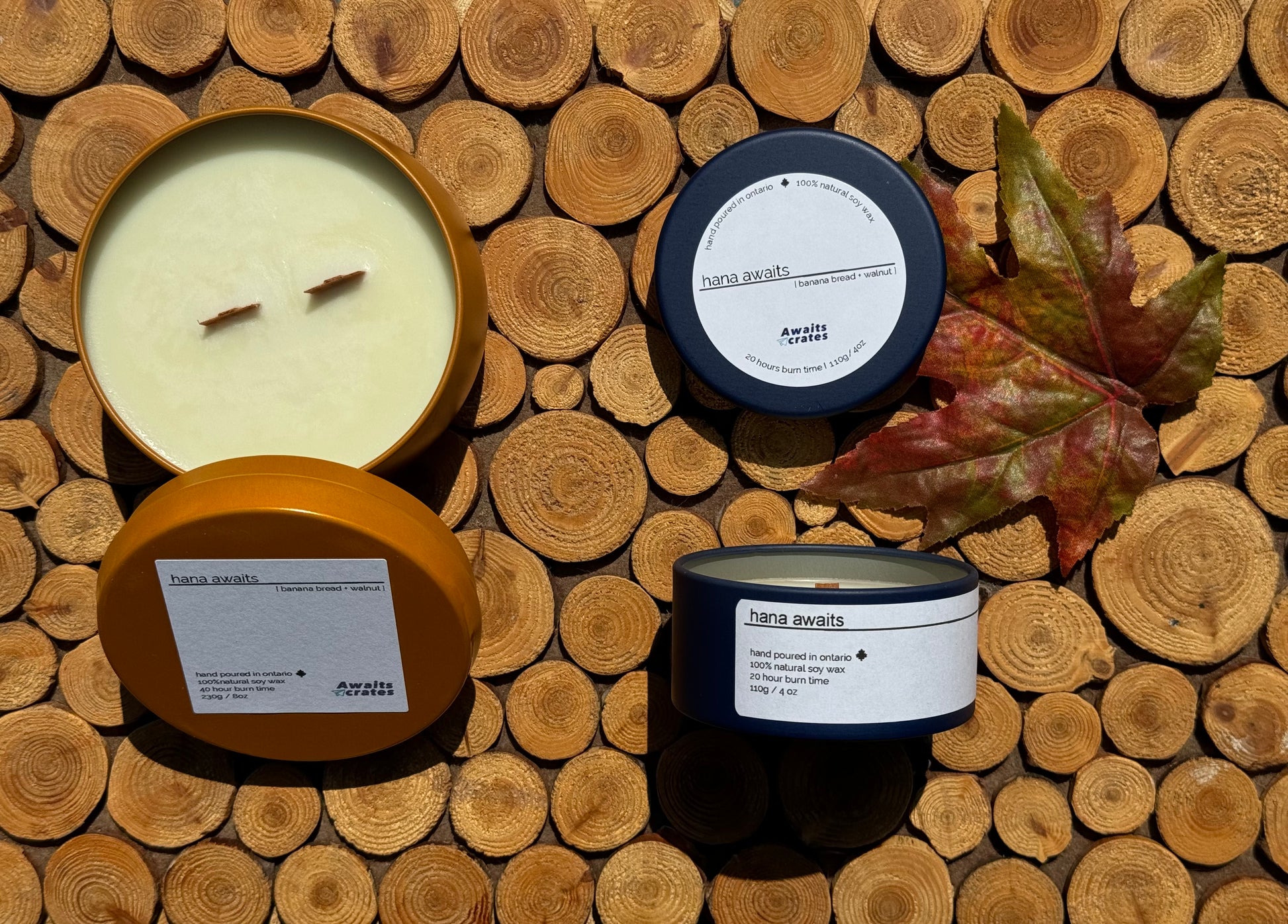 Hana Awaits Luxury Soy Wood Wick Candle: banana bread + walnut