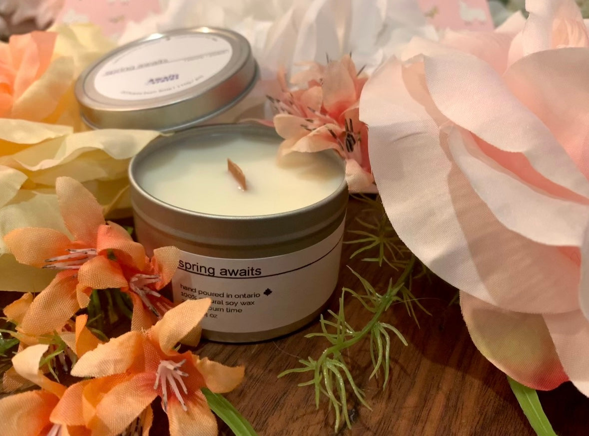An Awaits Crates fave brought back from our archives from our first year in business in 2021, this scent is an intoxicatingly sweet and floral all-encompassing spring scent! As we are hopeful in spring, this fragrance mirrors that and will help your happiness bloom once lit. There is no better scent to remind us of the rejuvenation that comes with the season of spring.