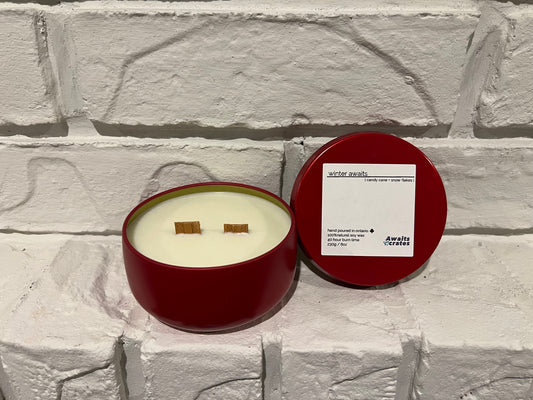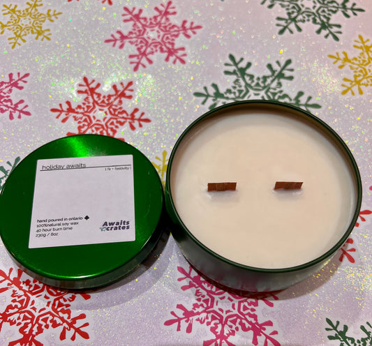 Holiday Awaits Luxury Soy Wood Wick Candle: fir + festivity